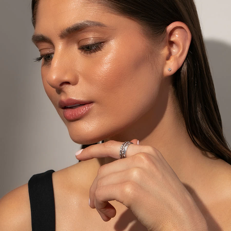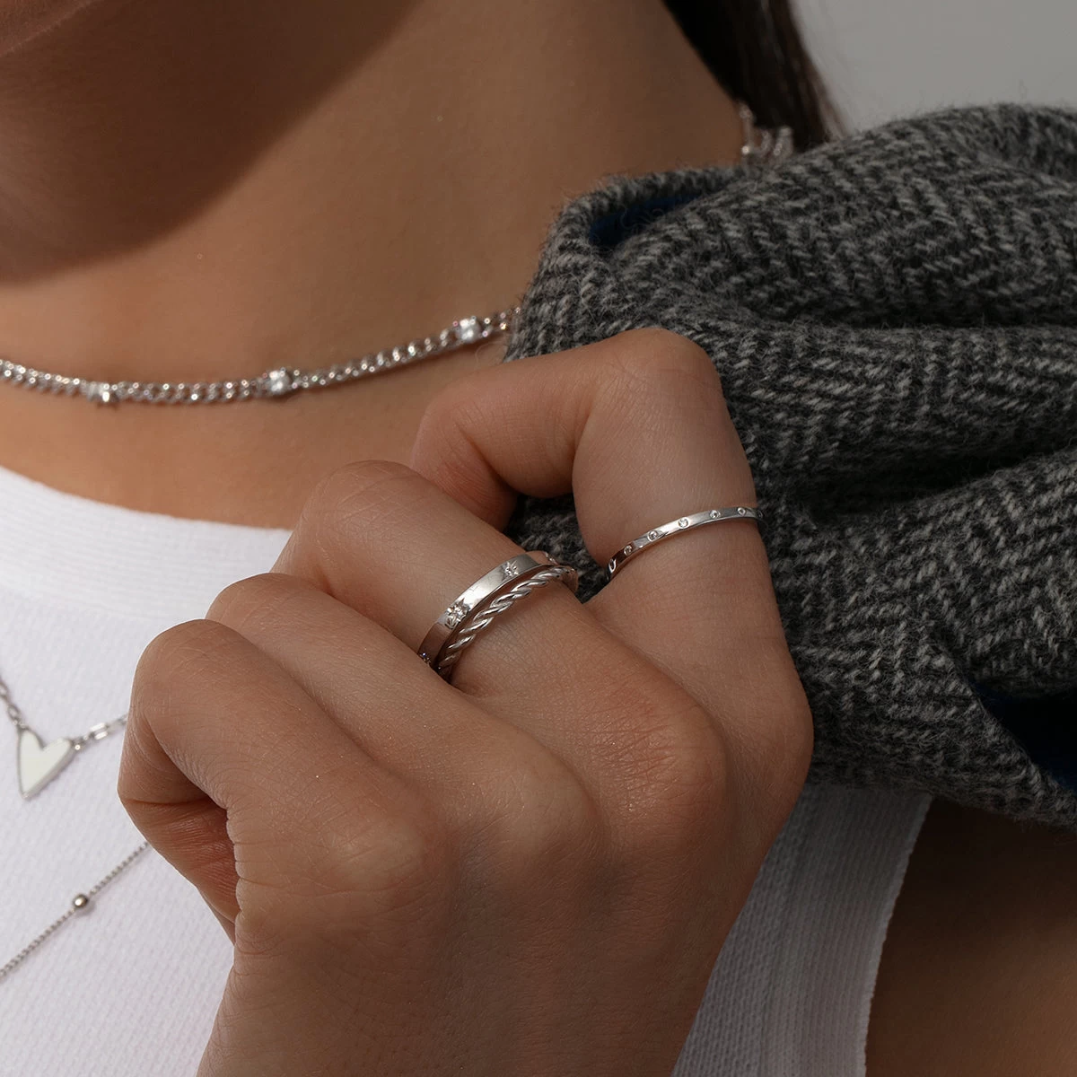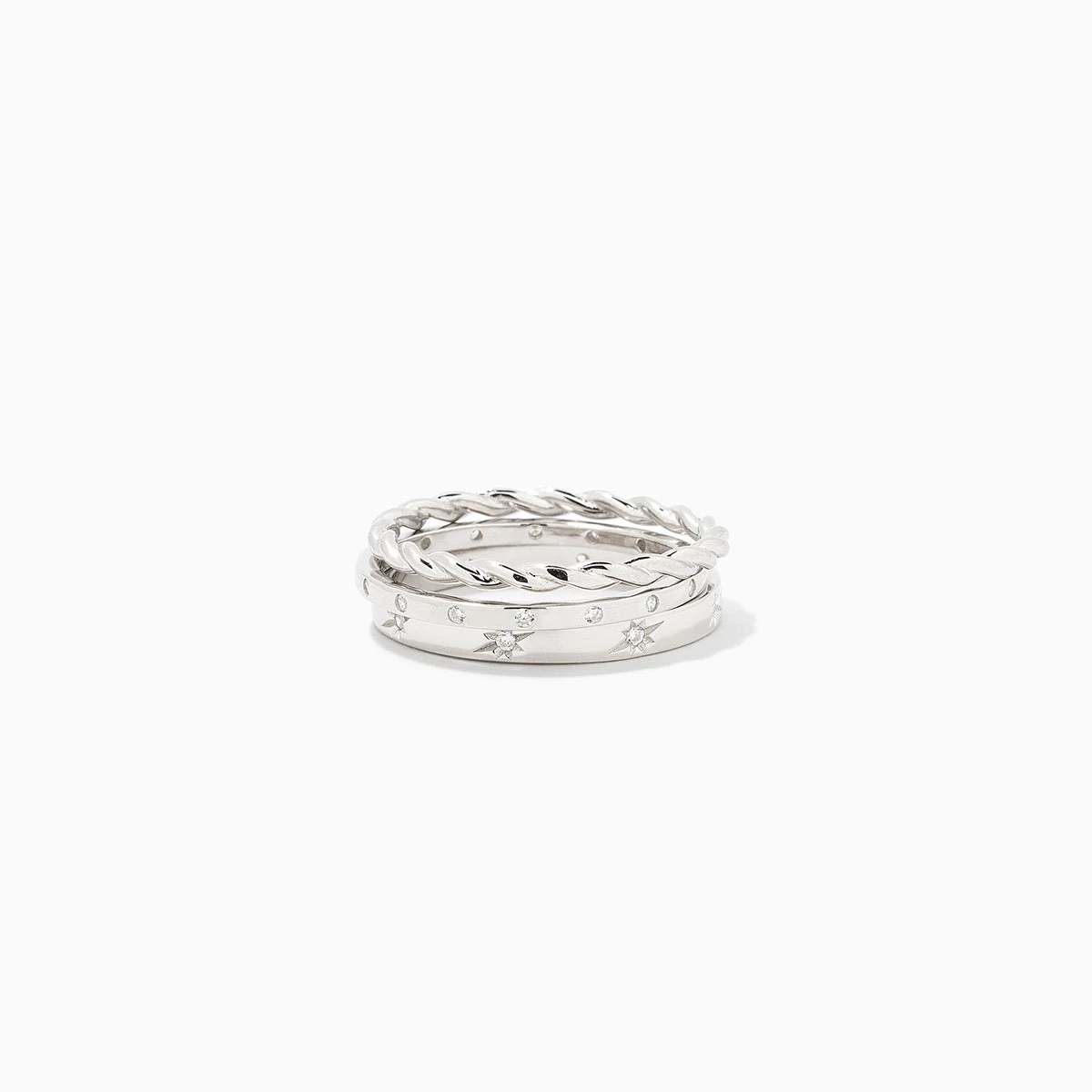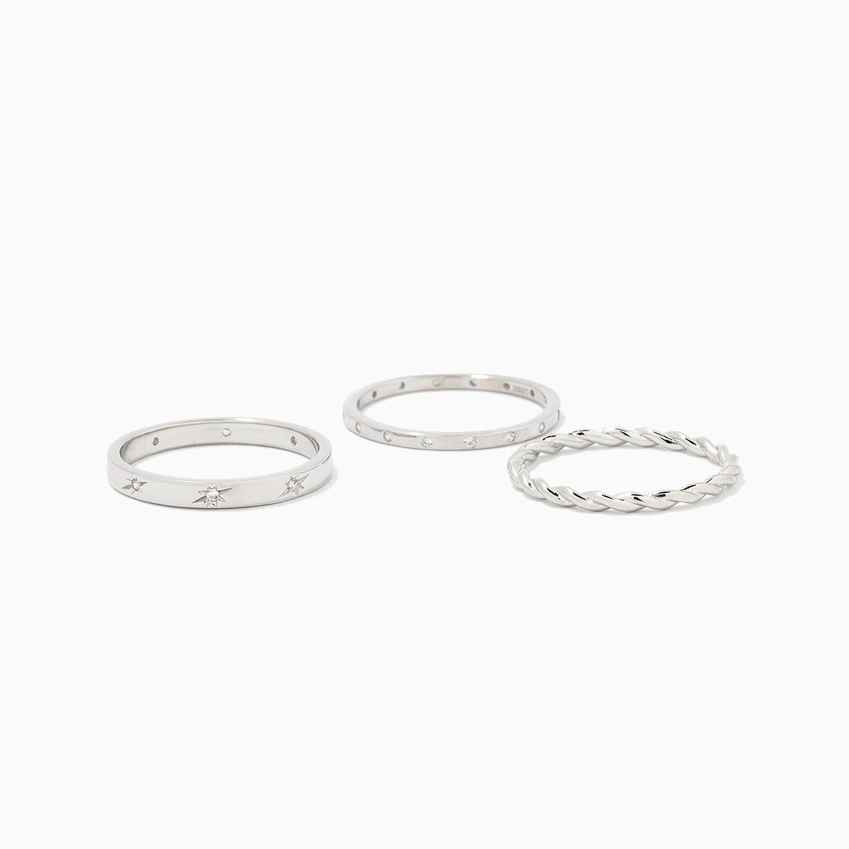 Mix and match your look with our Triad Ring set. Featuring three unique rings — one with sparkling stars, another with sparkling stones, and a thin rope chain — these Sterling Silver or gold stacking rings will be your everyday essentials.