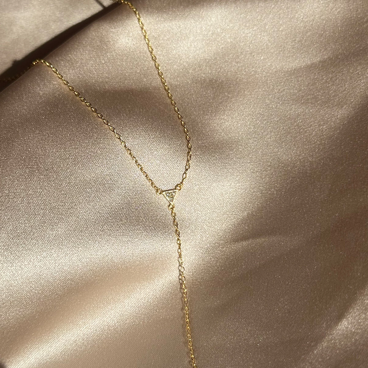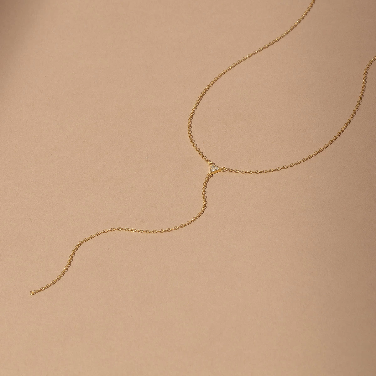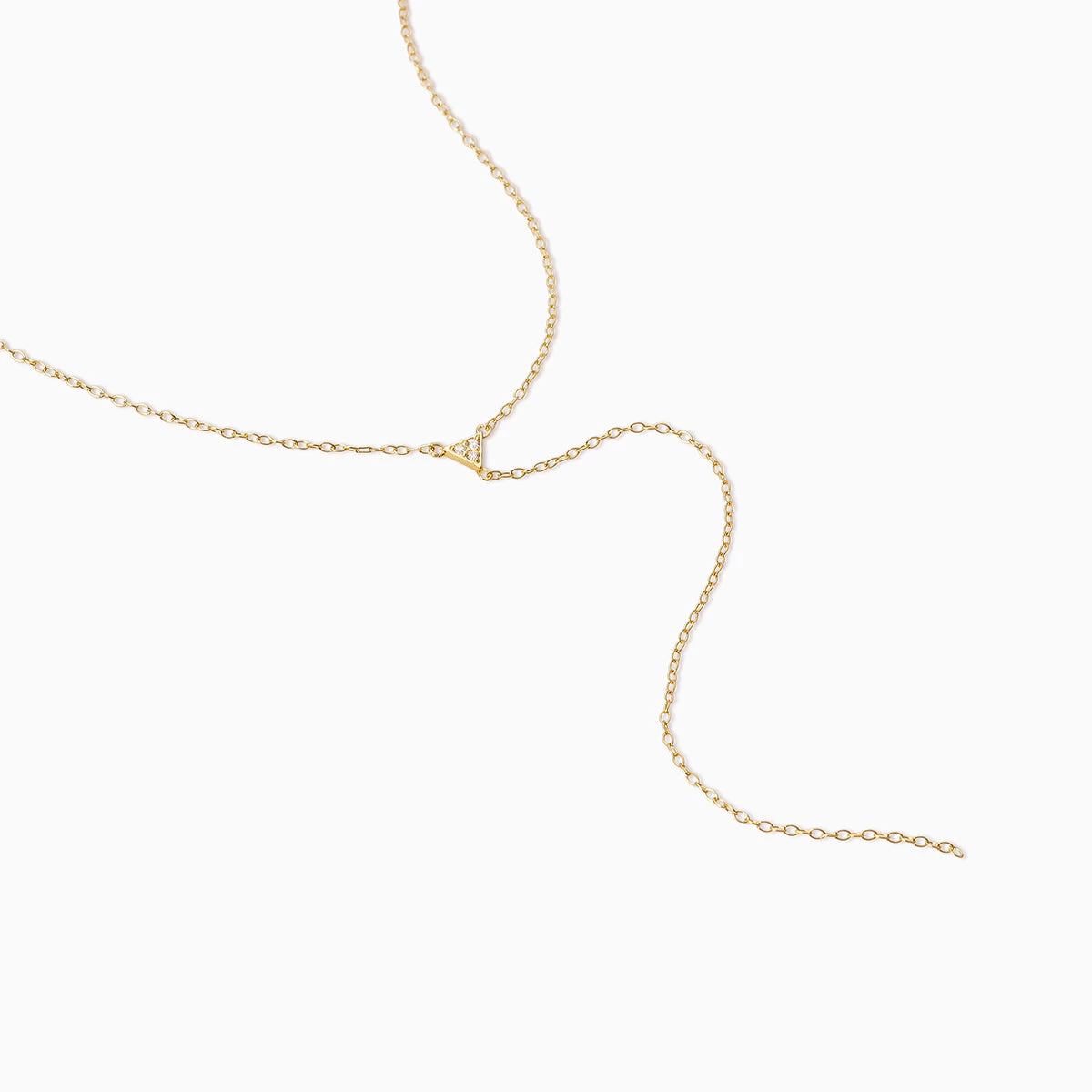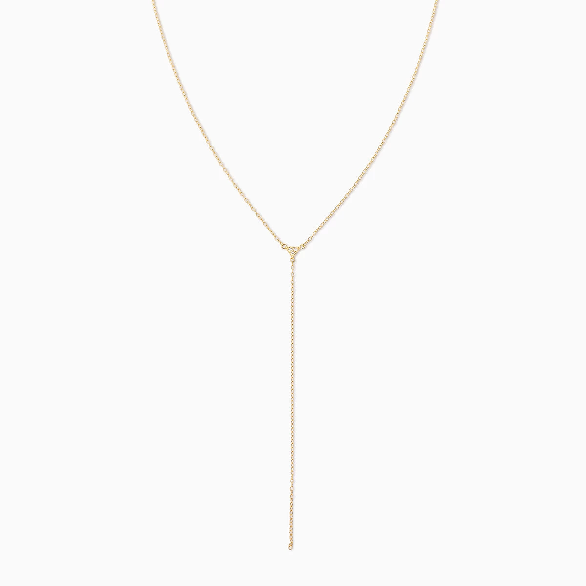 You’ve been waiting for a Vermeil lariat and the moment has finally arrived! Our Triangle Diamond Vermeil Lariat Necklace is crafted with 18k gold over sterling silver and includes a real, slightly included round-cut diamond front and center.