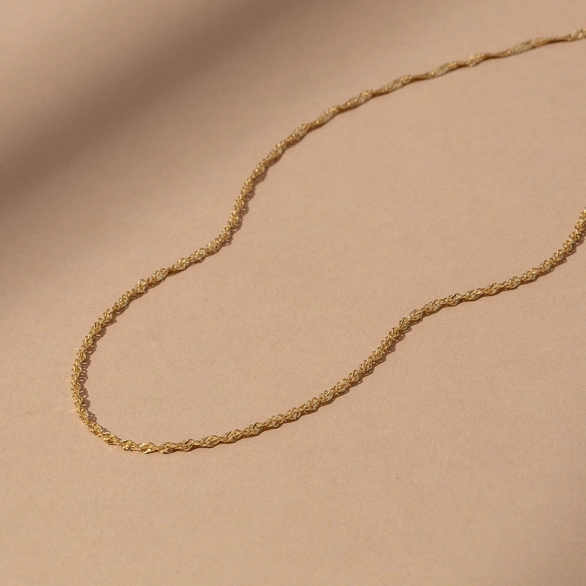 The perfect everyday chain necklace. Crafted with 18k gold over sterling silver, our Twist Chain Vermeil Necklace looks good on its own but can also be layered with whatever you want. For a necklace layering look our stylists love, pair this simple chain necklace with our Triangle Diamond Vermeil Lariat Necklace.Â