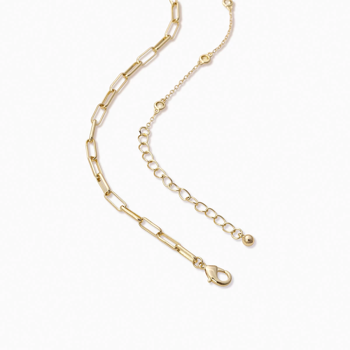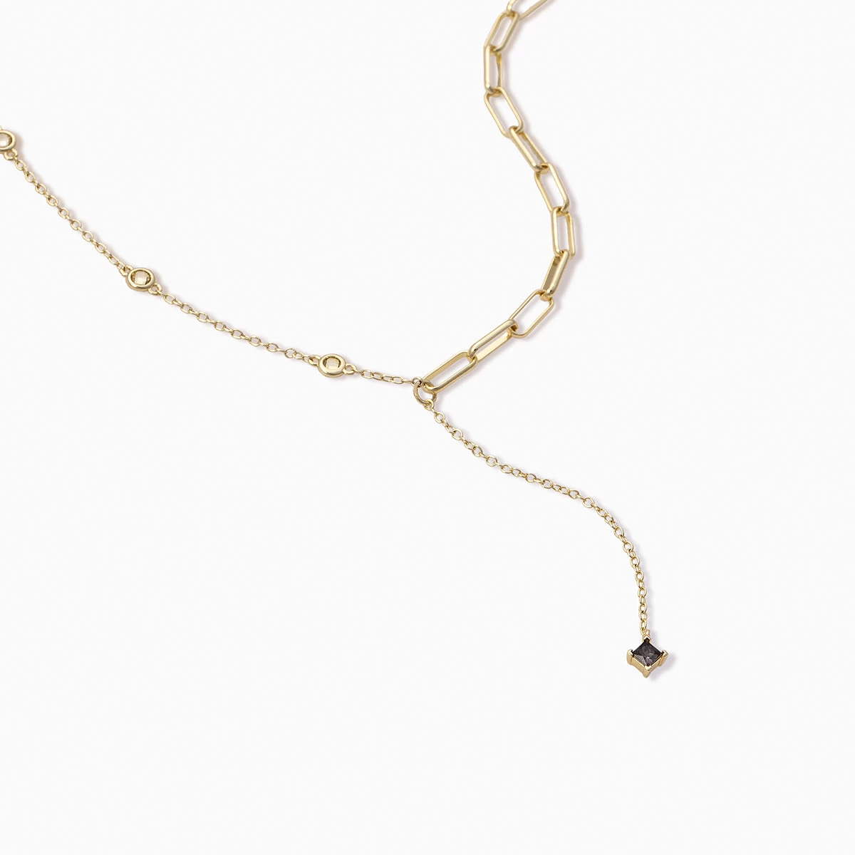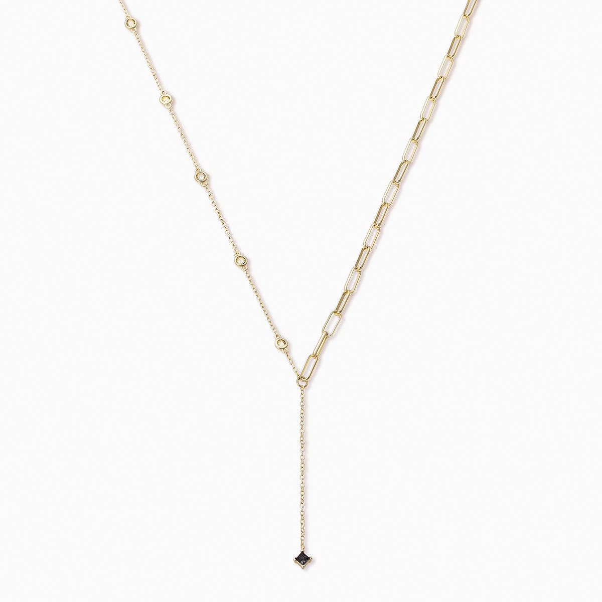 Thanks to our Undecided Necklace, you don’t have to pick just one style — this lariat necklace is the best of both worlds. Featuring a paperclip chain, a dainty chain, clear circular stones, and a black statement stone, this gold necklace will put all eyes on you. Want more lariat necklaces? Shop all of them right here.
