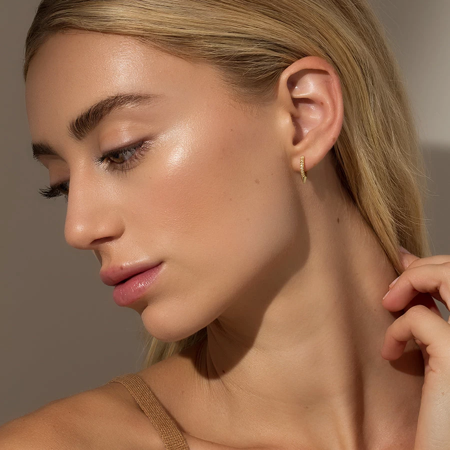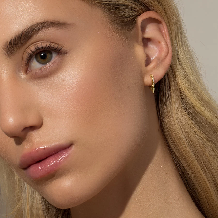 Your style will be untouchable with these small gold hoop earrings featuring a stud and row of pavé.