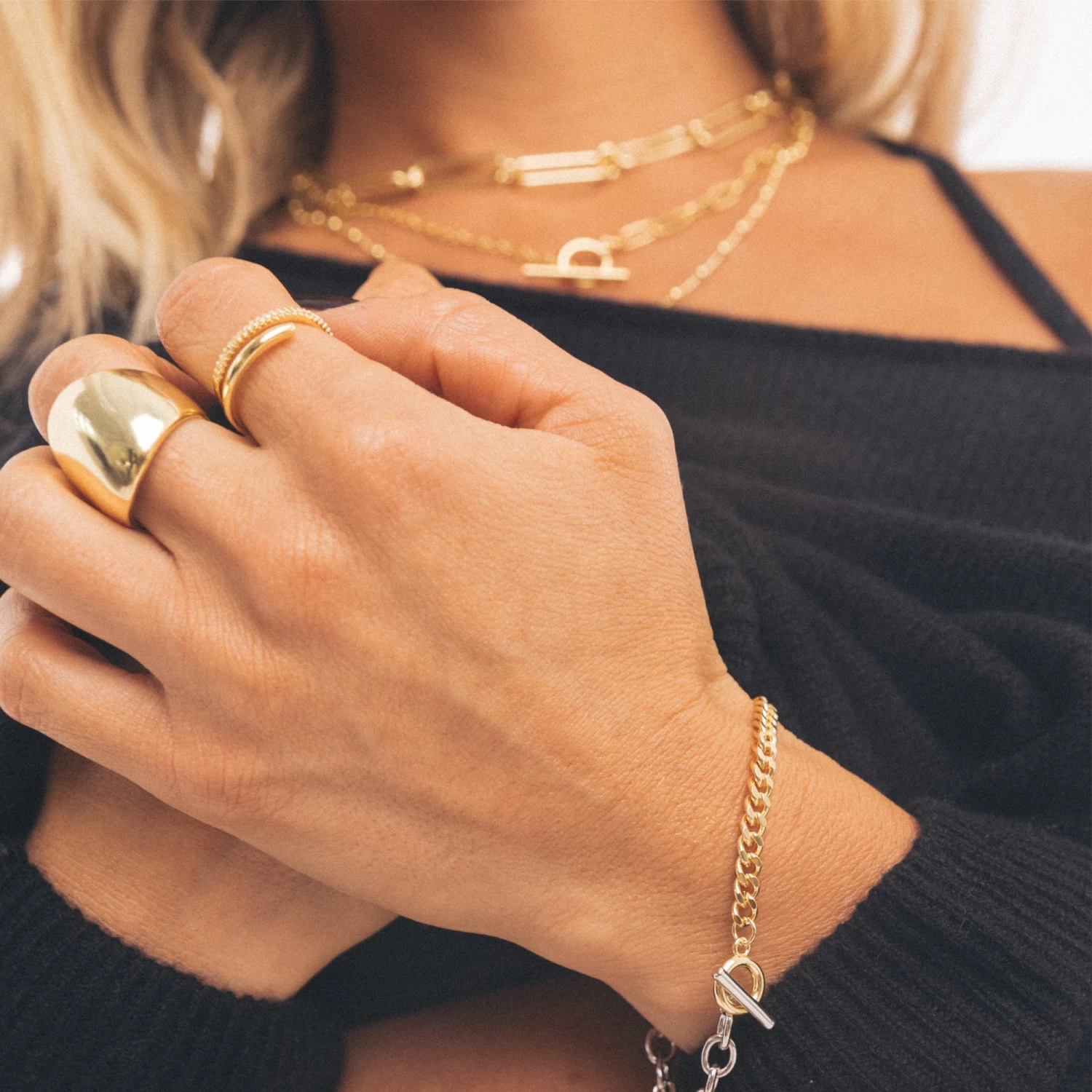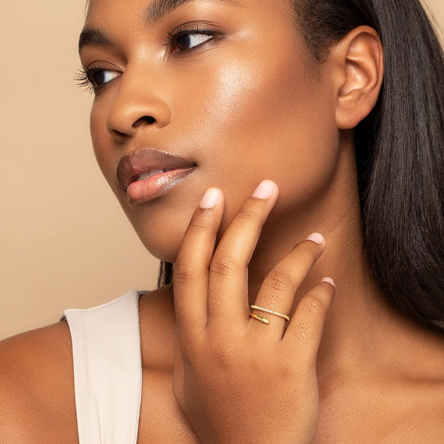 With a studded band connected with a gold asymmetrical band, the Versatile Ring gives you the look of a delicate stack without all the extra hardware.