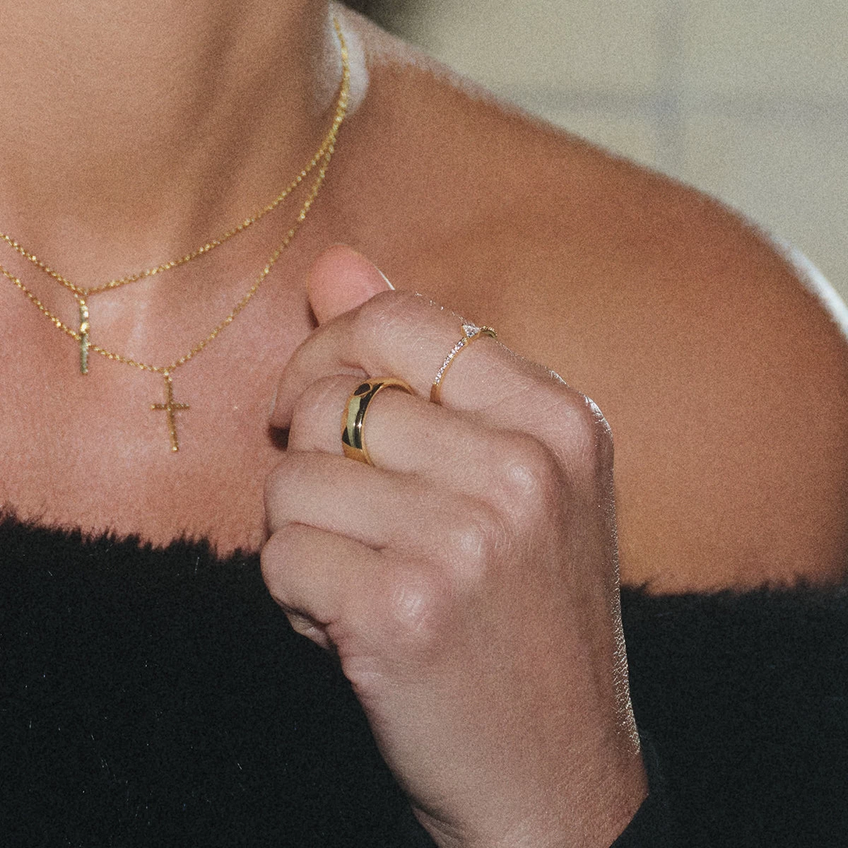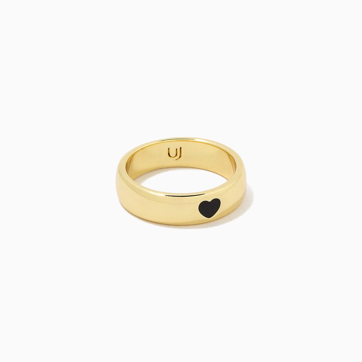 Add an extra touch of black to your look with our Whole Heart Ring. This statement ring is crafted from a thick gold band and a black heart. For a full look, pair this black and gold ring with any of our black and gold jewelry styles.