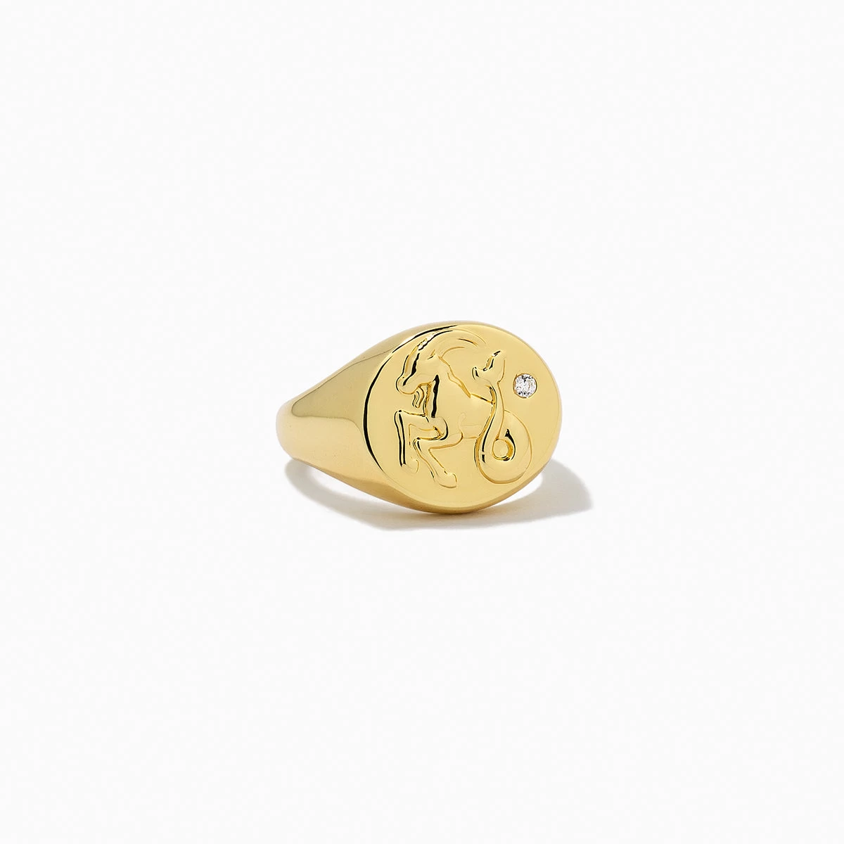 Wear your star sign with our Zodiac Ring. With one for every astrological sign, these gold rings add a touch of personalization to your everyday look. Not to mention, these personalized rings also bring a touch of shimmer to your look with a singular stone. For a full zodiac look, get our Zodiac Huggies. Want more personalized jewelry? Shop the full collection.
